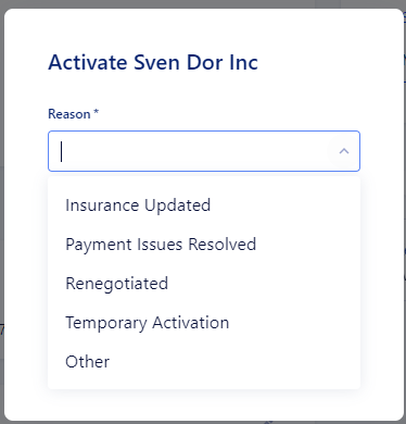 - Select 'Activate', and the modal for reactivation will pop up.