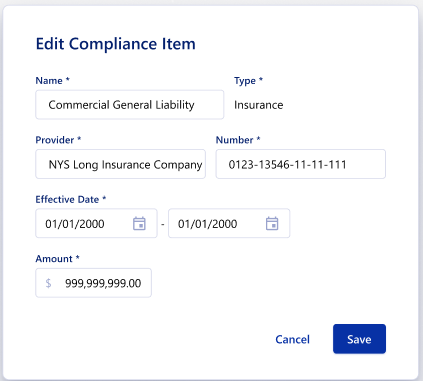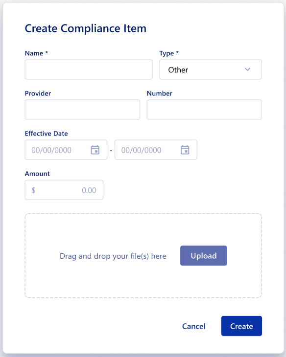 Creating compliance in Umbrava is a simple process, and you can create compliance items for vendors that are not on Umbrava.