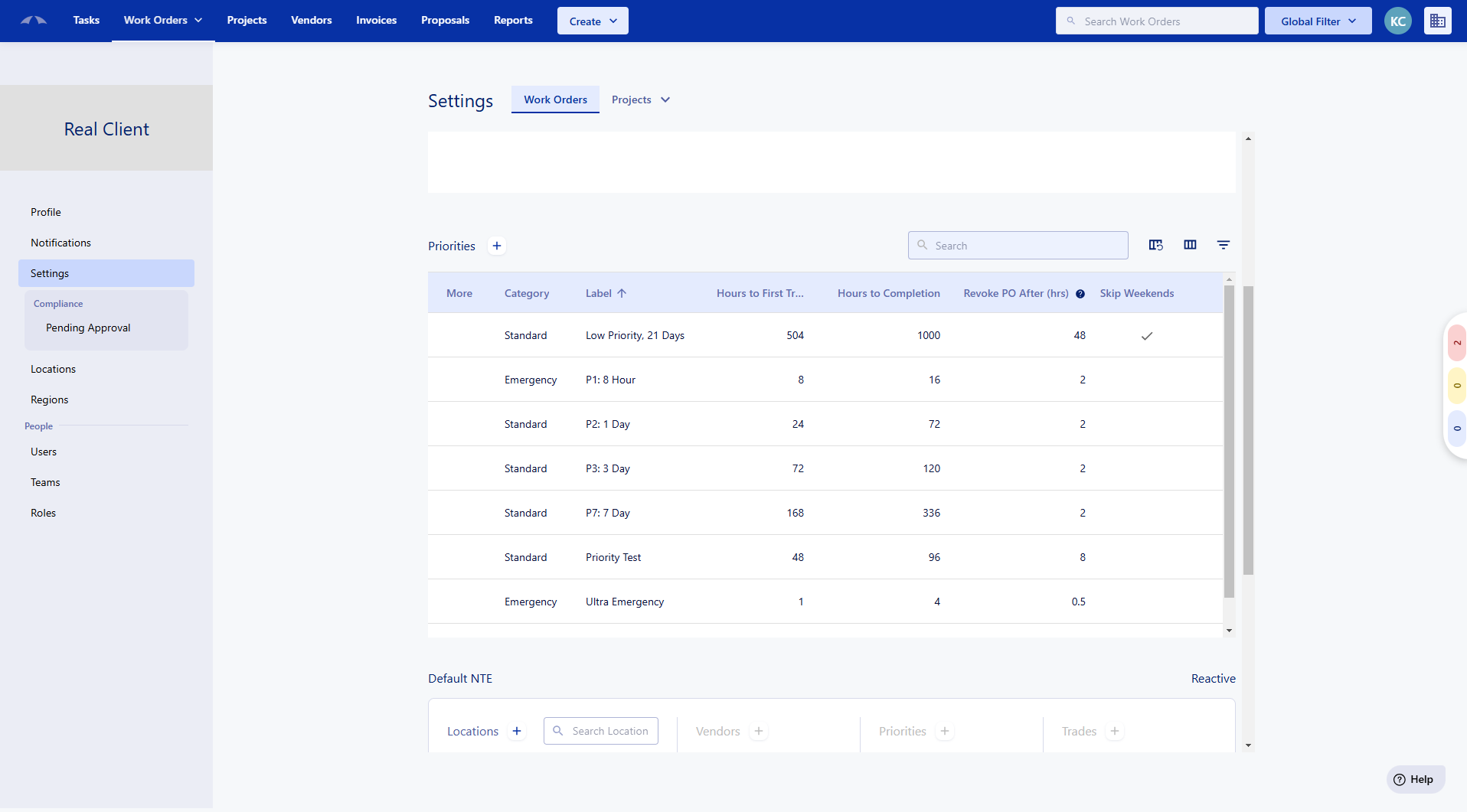 Priorities are used to show the urgency of your Work Order. They can be set up to say if a Work Order is an emergency, or a standard Work Order. Priorities that are set for your Work Order will automatically be set for your vendors assigned to the Work Order.