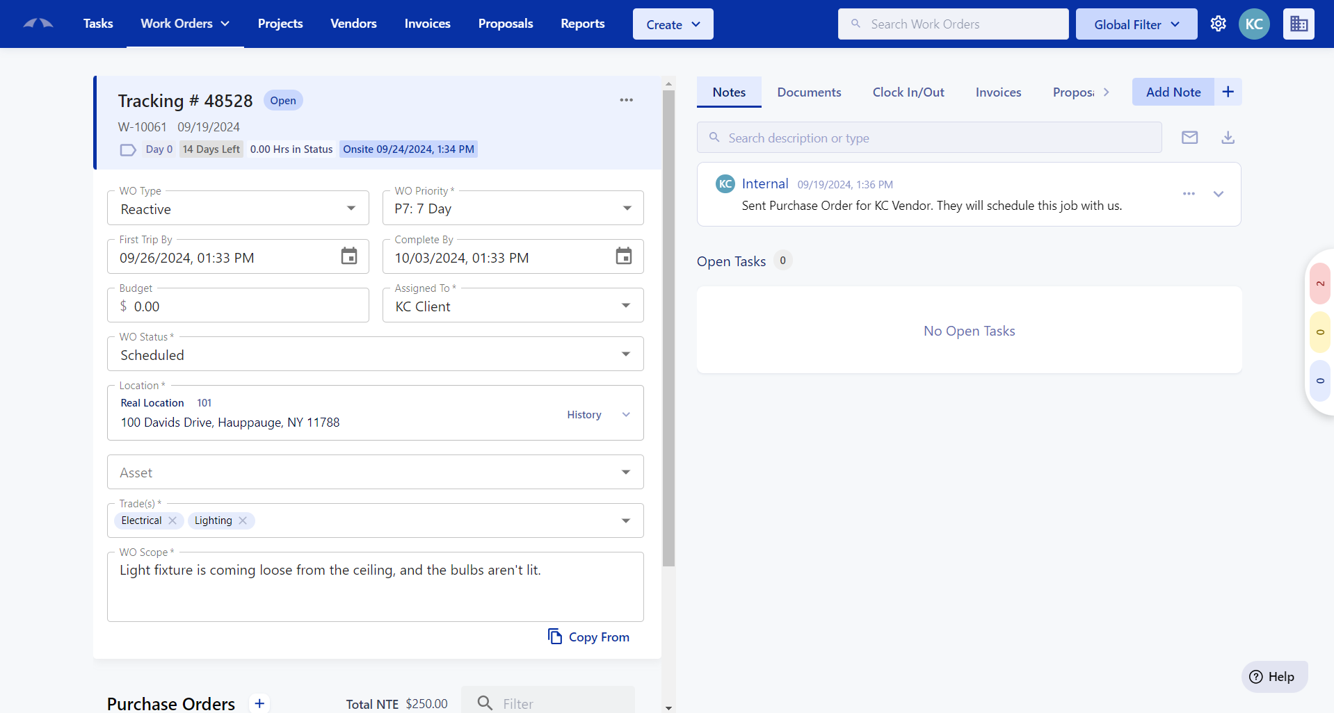 Notes are the place to keep track of information that is relevant to the work order. The notes section allows you to communicate any information between your own team, your vendors, or your client.