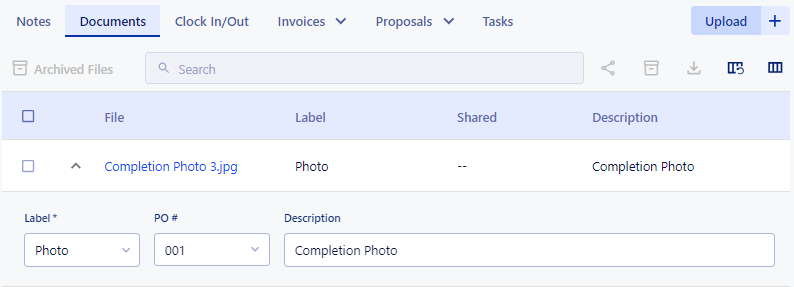 - Edit - When a document is expanded down, you can edit the label, PO# , and Description