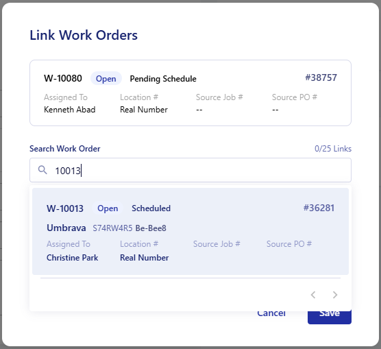 Link your work orders to easily navigate between the work and get information without having to search through the history.