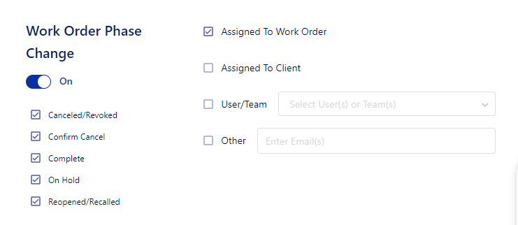 - Assigned To Client goes to the user that is assigned to that specific client of the Work Order or Project