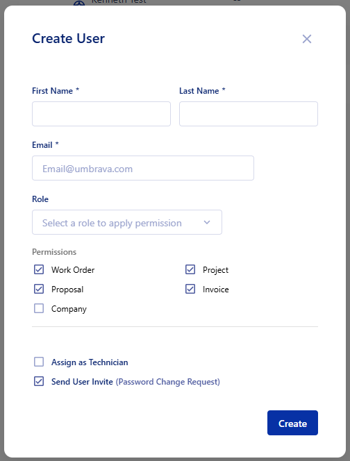 The user list contains all users that have ever been created for your company. Within the user profile, you can update user info, set a user as a technician, update a users specific permissions, and deactivate/activate a user.