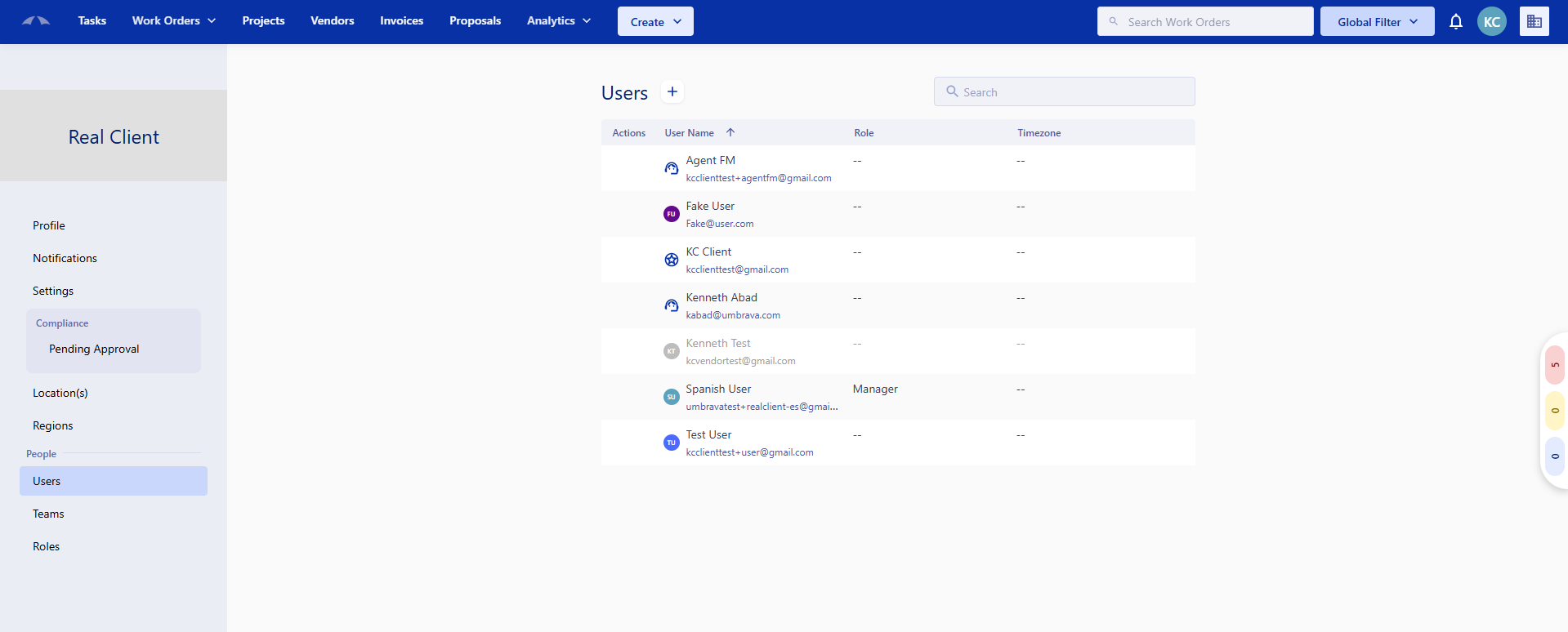 Here is a link to your User List: https://app.umbrava.com/company/users