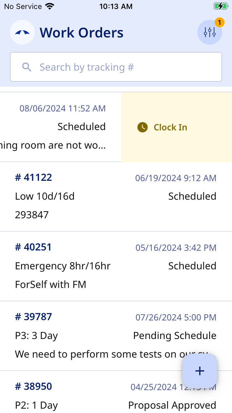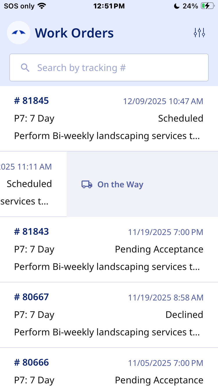 Step 1: Open the Work Order list on the mobile app and filter to find your Work Order. |