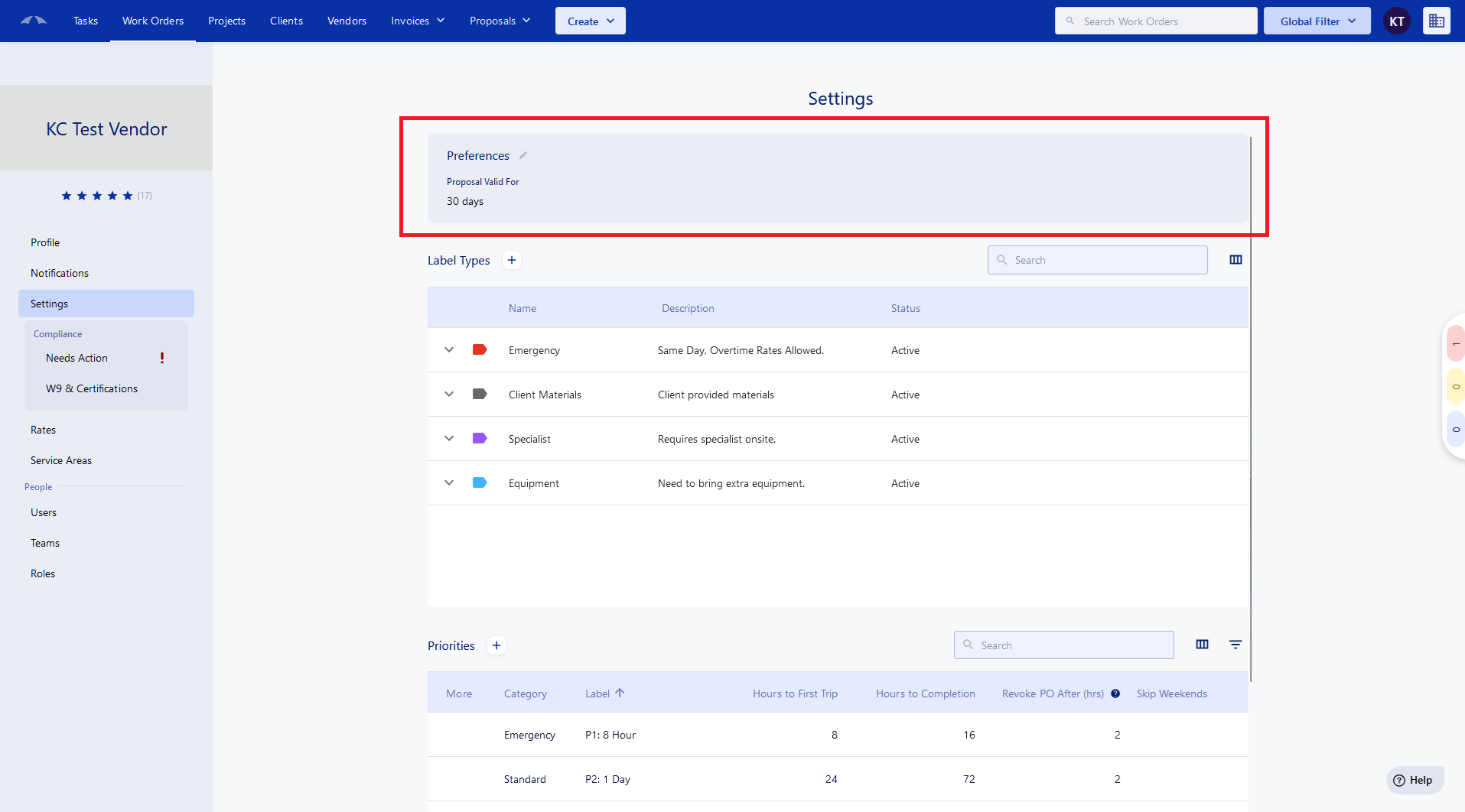 Proposal Valid for 'X' Days (US-7776): Your company can now set a default for how long your proposals are valid for. This can be set for both Work Order proposals and Project proposals.