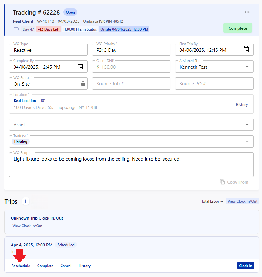 You can create a new trip for your Work Orders to keep your client up to date if you need to return for a new trip.