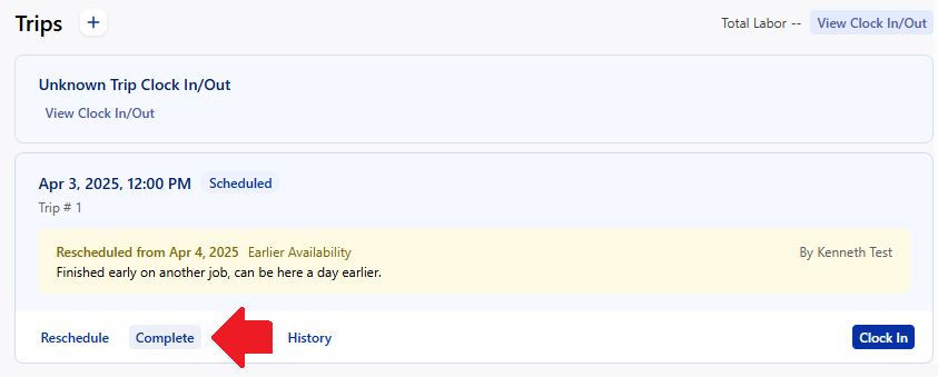 Once a trip has been completed, mark it as completed to keep your Work Order up to date.