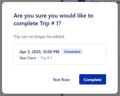 Step 2: Confirm the trip is complete and click the 'Complete' button. |