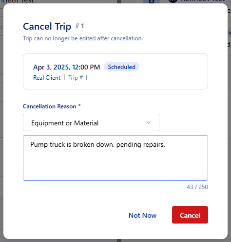 Trip Tip: Trips cannot be edited once completed or canceled. |