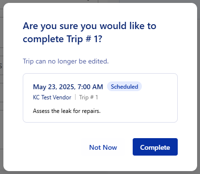 Trip Tip: Trips cannot be edited once completed or canceled. |