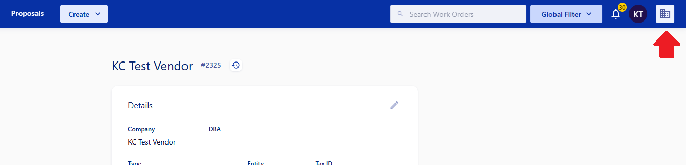 Step 1: Click the Icon at the top right of the app to access the Company Profile. |