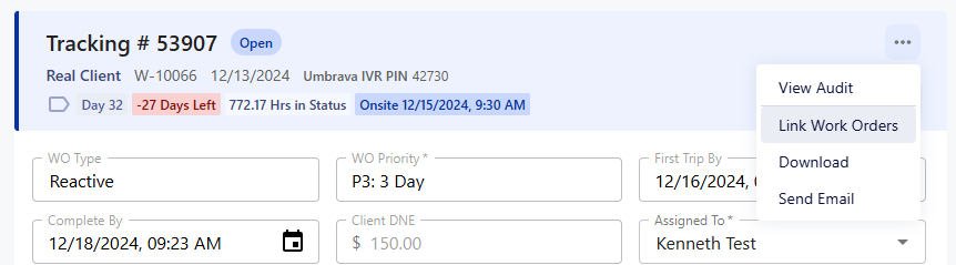 Step 2: Select the Context Menu and click 'Link Work Order' |