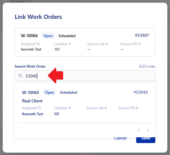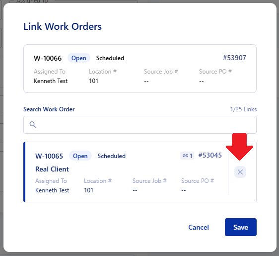 Work Order links will be in order of newest Work Order to Oldest.Unlinking Work Orders