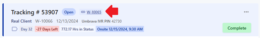 Step 5: The Work Orders are linked! Click the link in the details to go to the Work Order. |