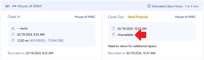 Display "Unavailable" on Clock In/Out card when no GPS coordinates are available (US-8040): We've updated the display of your coordinates when you clock in or out of a work order. When you're not connected to a GPS and coordinates are unavailable, we used to show 0 as the coordinates, now it will more accurately display "Unavailable".