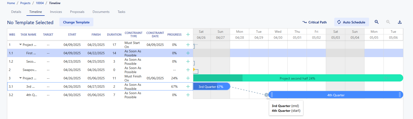 Once you make your changes, hit 'Save' and your Gantt chart will update with your newly input information.