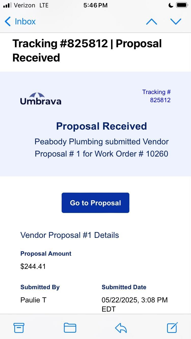 - Tap the Proposal button to see all of the Proposals that have been created/shared to your work order.