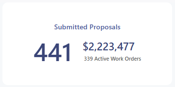 | This tile shows the total proposals that are have been submitted to your company that are pending review and the total amount that is proposed. |