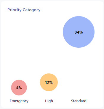 This tile groups all of your Work Orders by the Priority category. This allows you to track the volume of work that is an Emergency, High, or Standard priority.